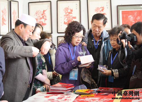 兩岸三地記者聯(lián)合采訪團(tuán)3月25日上午參訪開封朱仙鎮(zhèn)回族民間剪紙藝術(shù)展(中國(guó)臺(tái)灣網(wǎng)記者 王文英 攝)