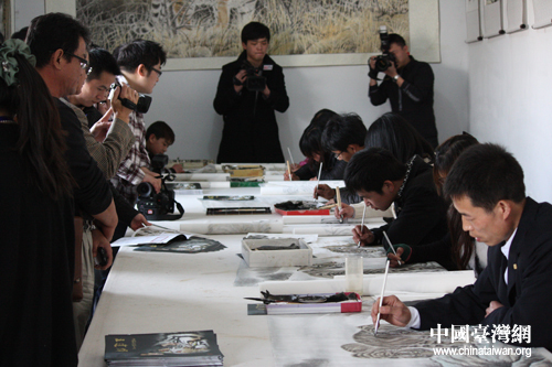 兩岸三地記者聯(lián)合采訪團(tuán)3月25日下午參訪河南商丘民權(quán)縣王公莊農(nóng)民畫虎(中國(guó)臺(tái)灣網(wǎng)記者 王文英 攝)