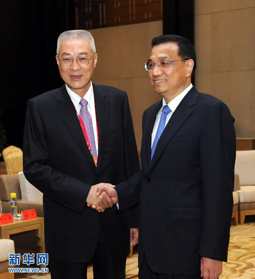 李克強副總理1日9時15分在海南博鰲會見由吳敦義率領、出席博鰲亞洲論壇2012年年會的臺灣兩岸共同市場基金會代表團。