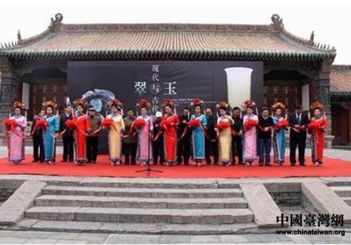 “翠與玉——現(xiàn)代與古代的對話”藝術(shù)展開幕儀式現(xiàn)場。(圖片來源:沈陽市臺辦)