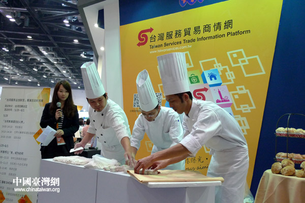 獲得國(guó)際大獎(jiǎng)的臺(tái)灣糕餅師傅現(xiàn)場(chǎng)進(jìn)行西點(diǎn)制作(中國(guó)臺(tái)灣網(wǎng) 李徽 攝)