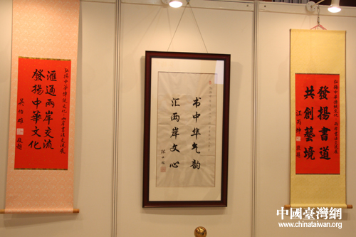 海協(xié)會(huì)會(huì)長(zhǎng)陳云林、國(guó)民黨榮譽(yù)主席吳伯雄和;鶗(huì)董事長(zhǎng)江丙坤特地為本展覽給予題詞祝賀。(中國(guó)臺(tái)灣網(wǎng) 陳寧 攝)