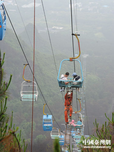 中國臺灣網(wǎng)6月1日桂林消息 5月26日,廣西桂林,大雨低溫。當(dāng)天上午,桂林堯山觀光纜車因機械故障停止運行,78名游客被困1400米段長的高空纜車,其中有22名臺灣游客。