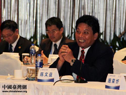 臺(tái)灣青年企業(yè)家交流協(xié)會(huì)會(huì)長(zhǎng)陳文益出席第四屆兩岸青年社團(tuán)負(fù)責(zé)人圓桌會(huì)議并講話。(中國(guó)臺(tái)灣網(wǎng) 王思羽 攝)