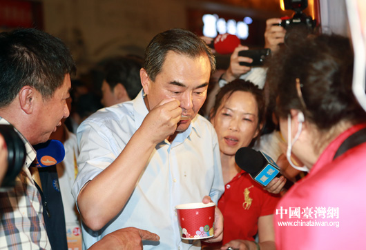 中國臺(tái)灣網(wǎng)6月18日廈門消息 中共中央臺(tái)辦、國務(wù)院臺(tái)辦主任王毅17日晚走進(jìn)廈門市中山路,逛臺(tái)灣特色廟會(huì),品原味道地小吃,看文化創(chuàng)意產(chǎn)品,與攤主拉家常話發(fā)展。