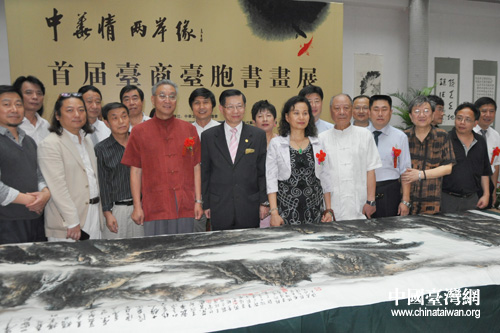 中國臺灣網(wǎng)6月23日上海消息“我們要將這幅一丈二尺的山水國畫作品特別獻給‘中華情-兩岸緣’首屆臺商臺胞書畫展活動組組委會,這是我們海峽兩岸書畫家攜手合作的成果,也是兩岸書畫藝術(shù)交流的最新成果,我們一定要把它載入史冊!”