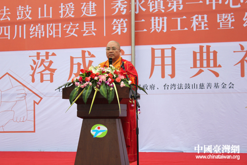 臺灣法鼓山果東方丈在儀式上致辭。(圖片來源:綿陽市臺辦)