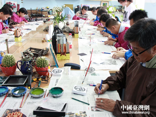 中國(guó)臺(tái)灣網(wǎng)7月12日北京消息 7月11日,臺(tái)灣南投縣教育參訪團(tuán)一行22人到東城區(qū)帽兒課程中心參觀交流,親身體驗(yàn)軟陶創(chuàng)意制作、布藝制作和版畫(huà)淺浮雕創(chuàng)作。