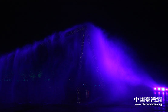 霧森以特有的高科技技術(shù)為《印象西湖》再造了“西湖雨霧”,配合五彩的燈光與西湖的美景,它的每一次出現(xiàn)都引起觀眾自發(fā)地?zé)崃夜恼。(中國臺灣網(wǎng)發(fā) 莫高泉 攝)
