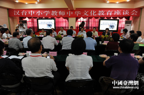 21日上午,參訪團一行來到武漢市常青實驗小學(xué),武漢、臺灣兩地中小學(xué)校長、教師在座談會上暢所欲言,就兩岸中小學(xué)中華文化教育問題進行主題交流。