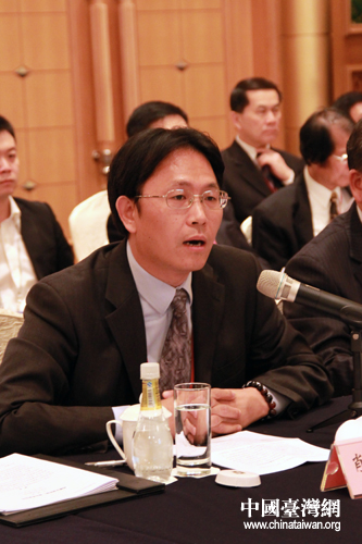 中共中央臺(tái)辦特邀專家肖夏勇在第八屆兩岸經(jīng)貿(mào)文化論壇分論壇“擴(kuò)大文教交流”議題的專題研討時(shí)發(fā)言。(中國(guó)臺(tái)灣網(wǎng) 楊麗 攝)