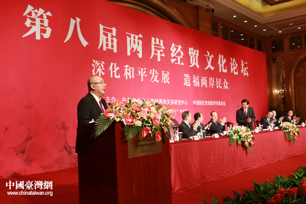 [蔣孝嚴]:《第八屆兩岸經(jīng)貿(mào)文化論壇共同建議》:由中共中央臺灣工作辦公室海峽兩岸關系研究中心與中國國民黨國政研究基金會共同主辦的第八屆兩岸經(jīng)貿(mào)文化論壇,于2012年7月28日至29日在黑龍江省哈爾濱市舉行。中共中央政治局常委賈慶林和中國國民黨榮譽主席吳伯雄出席論壇并致辭。國共兩黨有關方面負責人,其他黨派代表,兩岸工商產(chǎn)業(yè)界、金融界、旅游觀光界、文化教育界、影視出版界等方面人士和專家學者共同出席。兩岸有關部門主管人士作為特邀嘉賓和特邀專家出席本次論壇。[15:40]