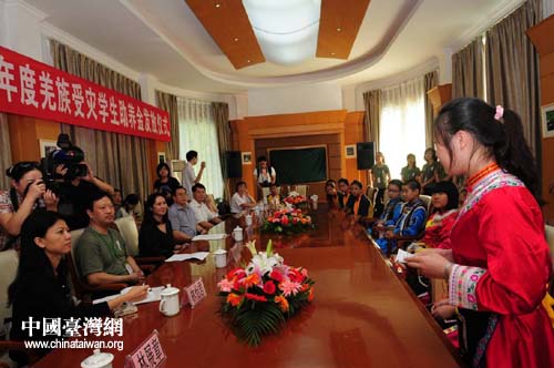 中國臺灣網(wǎng)8月10日成都消息 8月7日至10日,臺灣民意代表高金素梅率臺灣少數(shù)民族參訪團(tuán)赴四川參加“2012年四川世界自然文化遺產(chǎn)之旅”活動,并在成都大熊貓繁育研究基地向其資助的20名北川羌族受災(zāi)學(xué)生發(fā)放2012年度助養(yǎng)金74000元,這是她自2008年以來持續(xù)第5年資助羌族受災(zāi)學(xué)生,迄今累計金額達(dá)34萬余元人民幣。