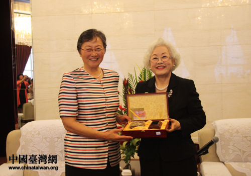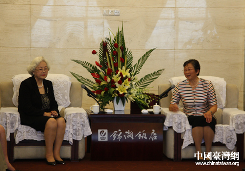 寧夏回族自治區(qū)人大副主任、自治區(qū)委領(lǐng)導(dǎo)干部聯(lián)誼會(huì)會(huì)長(zhǎng)張小素(右)會(huì)見(jiàn)了臺(tái)灣女企業(yè)家協(xié)會(huì)理事長(zhǎng)、臺(tái)灣農(nóng)漁業(yè)產(chǎn)銷(xiāo)聯(lián)盟發(fā)展協(xié)會(huì)理事長(zhǎng)、常富企業(yè)集團(tuán)總裁馬愛(ài)珍(左)一行。(中國(guó)臺(tái)灣網(wǎng) 李瑞艷 攝)