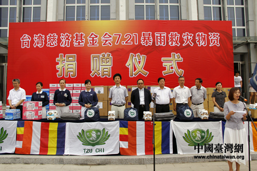 臺灣慈濟(jì)基金會7.21暴雨救災(zāi)物資捐贈儀式。(中國臺灣網(wǎng) 馬迪 攝)