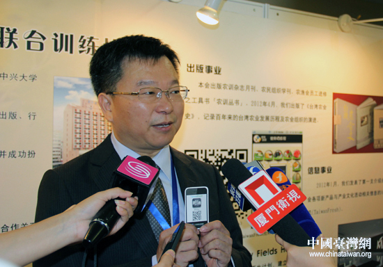 中國(guó)臺(tái)灣網(wǎng)8月15日北京消息 今天上午,由北京市臺(tái)辦與北京市科協(xié)共同主辦的2012年京臺(tái)青年科學(xué)家論壇在北京開(kāi)幕。臺(tái)灣農(nóng)民團(tuán)體干部聯(lián)合訓(xùn)練協(xié)會(huì)秘書長(zhǎng)王志文出席開(kāi)幕儀式,并向現(xiàn)場(chǎng)記者大力推介所在協(xié)會(huì)最新參與研發(fā)的智能手機(jī)軟件,號(hào)召京城市民積極下載“搶鮮機(jī)”。