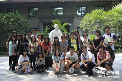 8月14日,由中國宋慶齡基金會和臺灣“十大杰出青年基金會”共同組織的“臺灣青年學生交流團”活動開始參訪上海。圖為交流團在上海宋慶齡故居雕像前合影留念。(中國臺灣網(wǎng) 孟雅詩 攝)