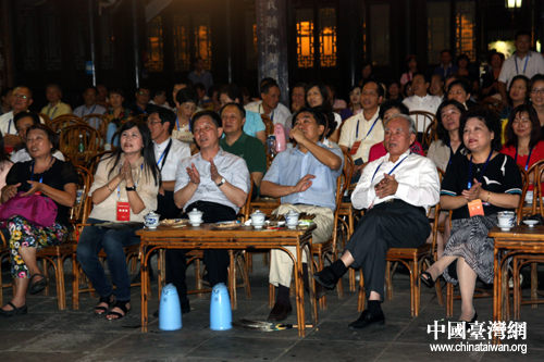 19日傍晚,前來成都出席第三屆兩岸縣市“雙百論壇”的100余位臺灣議員和大陸有關(guān)省市的部分地市人大、政協(xié)代表在成都著名旅游景區(qū)武侯祠結(jié)義樓舉辦了一場別開生面的納涼聯(lián)歡晚會。中共中央臺辦副主任葉克冬參加晚會。(中國臺灣網(wǎng) 王怡然 攝)