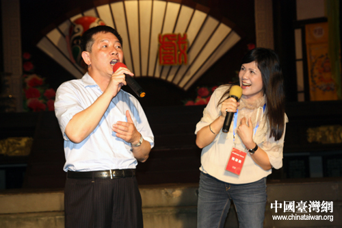 中國臺灣網(wǎng)8月20日成都消息 晚風(fēng)習(xí)習(xí),秋蟲低吟……八月的成都氣候涼爽宜人。19日傍晚,前來成都出席第三屆兩岸縣市“雙百論壇”的100余位臺灣議員和大陸有關(guān)省市的部分地市人大、政協(xié)代表,在成都著名旅游景區(qū)武侯祠結(jié)義樓舉辦了一場別開生面的聯(lián)歡納涼晚會,兩岸嘉賓紛紛登臺獻藝。中共中央臺辦副主任葉克冬參加晚會。(中國臺灣網(wǎng)記者 王怡然)