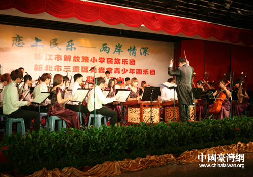 中國臺灣網(wǎng)8月23日鎮(zhèn)江消息 8月22日,來自臺灣新北市三重區(qū)先嗇宮青少年國樂團與鎮(zhèn)江市解放路小學(xué)民族樂團在鎮(zhèn)江市工人文化宮聯(lián)合舉辦了一場“戀上民樂——兩岸情深”海峽兩岸青少年民樂交流演出。鎮(zhèn)江市副市長曹麗虹與江蘇省、鎮(zhèn)江市有關(guān)部門領(lǐng)導(dǎo),鎮(zhèn)江市臺屬聯(lián)誼會會員,應(yīng)邀到鎮(zhèn)江的常州市臺商代表及鎮(zhèn)江市解放路小學(xué)部分師生代表共300多人一同欣賞了這場精彩的演出。