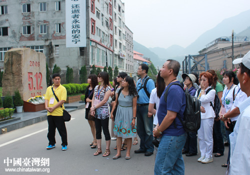 參訪團(tuán)一行考察北川地震遺址紀(jì)念館。(圖片來源:綿陽市臺辦)