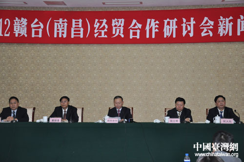 2012贛臺(南昌)經(jīng)貿(mào)合作研討會新聞發(fā)布會現(xiàn)場。(圖片來源:江西省臺辦)