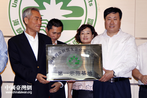 海峽兩岸聯(lián)盟女企業(yè)家交流中心基地授牌、授聘儀式23日上午11時許在北京懷柔舉行,標(biāo)志著首個海峽兩岸聯(lián)盟女企業(yè)家交流中心基地正式落戶北京。(中國臺灣網(wǎng) 楊麗 攝)