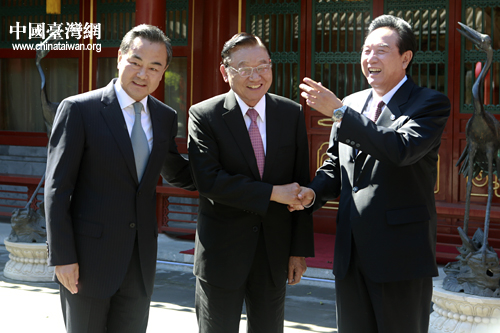 9月28日中午,中共中央臺辦、國務院臺辦主任王毅會見了臺灣;鶗岸麻L江丙坤。(中國臺灣網(wǎng) 陳佳慧 攝)