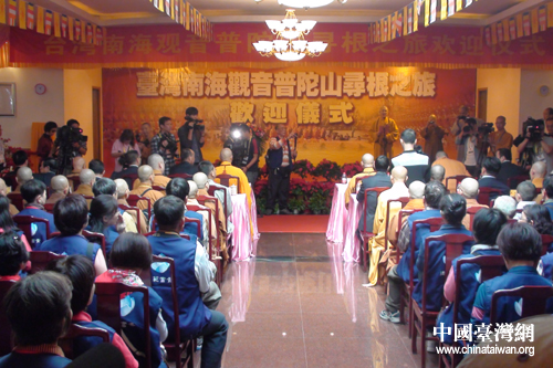 臺灣南海觀音普陀山尋根之旅歡迎儀式在浙江普濟(jì)禪寺舉行。(圖片來源:舟山市臺辦)