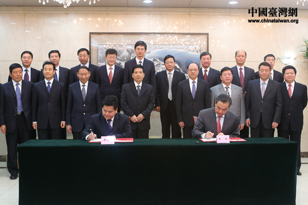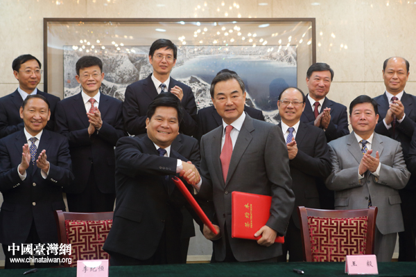 中共中央臺(tái)辦、國(guó)務(wù)院臺(tái)辦主任王毅和云南省委副書(shū)記、省長(zhǎng)李紀(jì)恒簽署合作備忘錄。(中國(guó)臺(tái)灣網(wǎng) 于斯文 攝)
