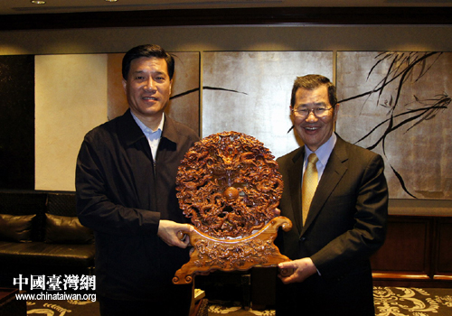 山東省副省長夏耕與兩岸共同市場基金會榮譽董事長蕭萬長親切會面。(圖片來源:山東省臺辦)