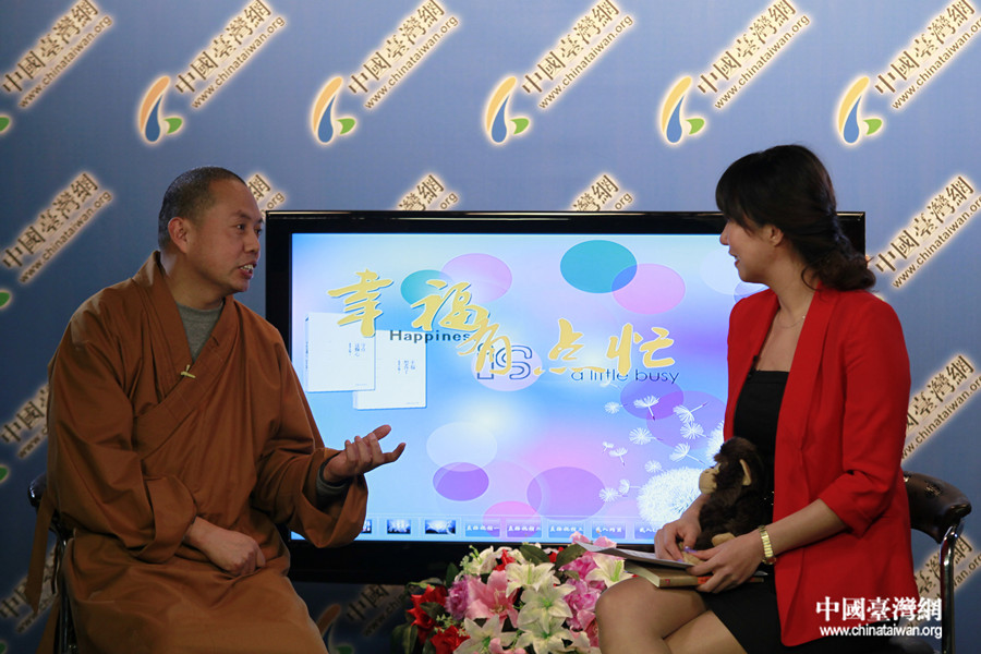 延參法師攜新書《幸福想你了》作客中國臺灣網(wǎng),與兩岸網(wǎng)友暢談幸福與人生。(中國臺灣網(wǎng) 王偉 攝)