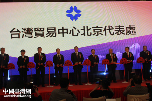 臺灣貿(mào)易中心北京代表處27日正式設(shè)立,圖為掛牌剪彩現(xiàn)場。(中國臺灣網(wǎng) 楊麗 攝)