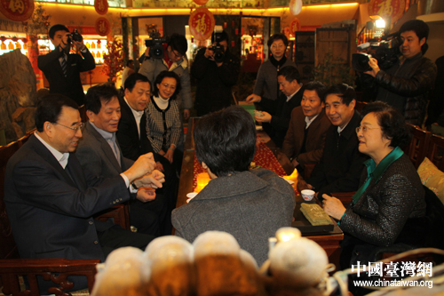 中國臺灣網(wǎng)1月16日北京消息 在新春佳節(jié)即將到來之際,16日上午,全國政協(xié)副主席、臺盟中央主席林文漪一行走訪慰問了位于北京市東城區(qū)的著名臺資企業(yè)“天福茗茶”,與企業(yè)代表座談,并向他們致以新春的問候。