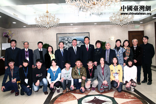 21日下午,海峽兩岸關(guān)系協(xié)會(huì)會(huì)長(zhǎng)陳云林在北京會(huì)見(jiàn)了來(lái)京交流的廣東東莞臺(tái)商子弟學(xué)校董事長(zhǎng)葉宏燈,及其率領(lǐng)的該校校董、師生與家長(zhǎng)代表。(中國(guó)臺(tái)灣網(wǎng) 于斯文 攝)
