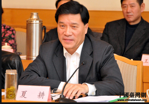 山東省副省長夏耕出席會議并講話。(圖片來源:山東省臺辦)