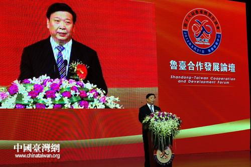 山東省省長(zhǎng)姜大明在魯臺(tái)合作發(fā)展論壇上宣布支持臺(tái)資企業(yè)發(fā)展七項(xiàng)新舉措。(圖片來(lái)源:山東省臺(tái)辦)