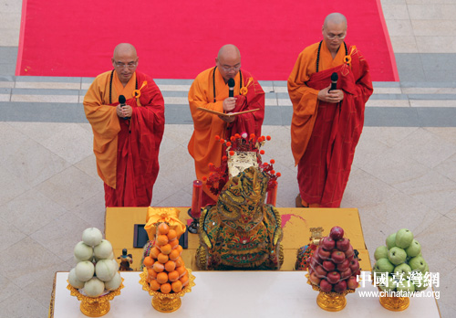 中國(guó)臺(tái)灣網(wǎng)3月31日高雄消息 30日下午,山西關(guān)公祖廟圣像停駕臺(tái)灣佛光山,一場(chǎng)別開生面的關(guān)圣帝君祈福法會(huì)在佛光山佛陀紀(jì)念館舉辦。