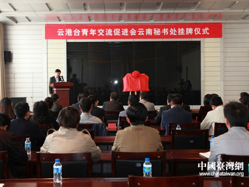 3月29日上午,云港臺青年交流促進(jìn)會云南秘書處在云南省臺辦掛牌成立。圖為掛牌儀式現(xiàn)場。(云南省臺辦李仁興 攝)