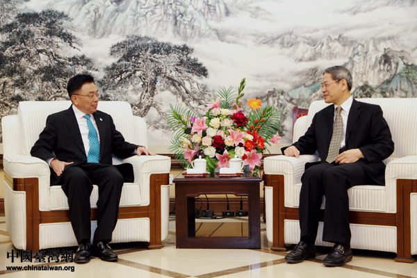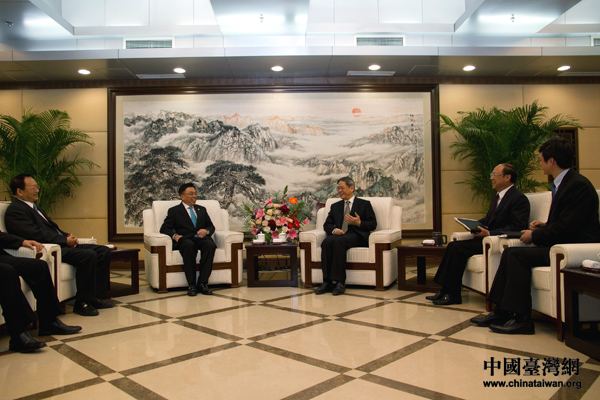 4月16日上午,中共中央臺(tái)辦、國(guó)務(wù)院臺(tái)辦主任張志軍會(huì)見了臺(tái)企聯(lián)會(huì)長(zhǎng)郭山輝等一行。(中國(guó)臺(tái)灣網(wǎng)發(fā) 陳筠 攝)
