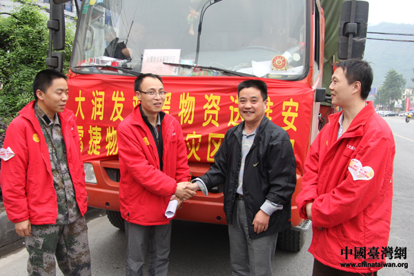 在4·20地震災(zāi)害發(fā)生后,廣大臺灣同胞對雅安伸出了援手。時勇介紹說,很多在川臺企和他們直接聯(lián)系,給予雅安災(zāi)區(qū)援助的有旺旺、康師傅、統(tǒng)一、大潤發(fā)等臺資企業(yè),這些企業(yè)在第一時間克服山區(qū)道路險惡的困難,連夜將群眾急需的棉被、食品等物資運(yùn)抵災(zāi)區(qū)。