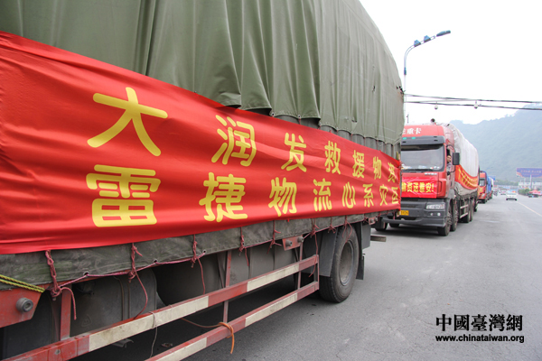臺資“大潤發(fā)超市連鎖企業(yè)”向蘆山縣地震災(zāi)區(qū)捐助物資的賑災(zāi)物資運(yùn)輸車。(韓蕊 攝)