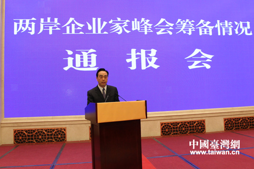 4月25日下午,兩岸企業(yè)家峰會(huì)籌備情況通報(bào)會(huì)在江蘇省南京市舉行。(中國(guó)臺(tái)灣網(wǎng) 馬迪 攝)