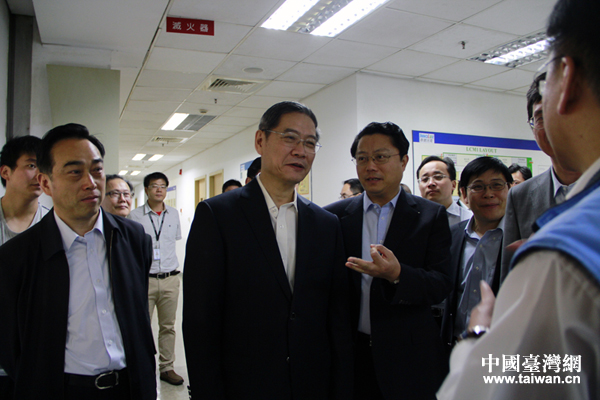5月16日,中共中央臺(tái)辦、國(guó)務(wù)院臺(tái)辦主任張志軍實(shí)地考察臺(tái)資企業(yè)統(tǒng)寶光電。(中國(guó)臺(tái)灣網(wǎng) 楊麗 攝)