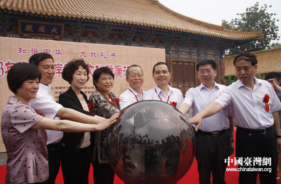 兩岸嘉賓共同開啟“和諧中華·大哉孔子—2013兩岸儒家文化推廣活動”。(中國臺灣網(wǎng) 朱煉 攝)