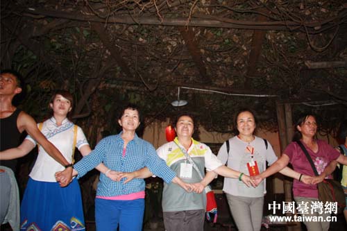 中國臺灣網(wǎng)8月19日恩施消息 19日下午,在參觀了恩施大峽谷和云龍河地縫之后,由臺灣“中華海峽兩岸臺灣原住民暨少數(shù)民族交流協(xié)會”理事長簡東明率領的臺灣少數(shù)民族參訪團體驗了獨具土家族特色的摔碗酒。臺灣少數(shù)民族代表與土家族青年都表演了各自的民族歌舞,最后,在場所有嘉賓手牽手圍繞篝火唱起歌跳起舞,在這片歡樂的海洋里為臺灣少數(shù)民族參訪團對恩施的參訪畫上了完美句號。