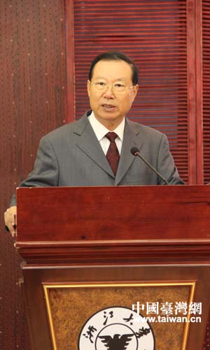 隨后,浙江大學(xué)黨委書記金德水、臺(tái)灣“國(guó)策研究院”董事長(zhǎng)兼院長(zhǎng)田弘茂、臺(tái)灣海基會(huì)副董事長(zhǎng)許勝雄和臺(tái)灣中廣集團(tuán)董事長(zhǎng)張榮恭分別致辭。