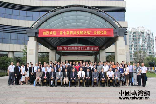 參加“第七屆兩岸發(fā)展論壇”的兩岸嘉賓集體合影留念。(中國(guó)臺(tái)灣網(wǎng) 扶海濤 攝)