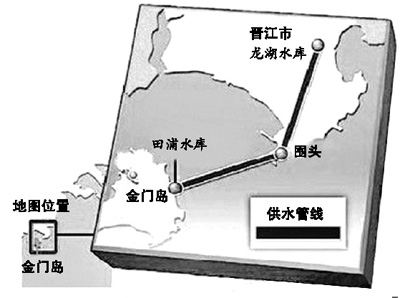 根據(jù)初步方案,向金門供水工程計劃從泉州晉江市龍湖取水,通過海底管道送到金門島的田埔水庫。
