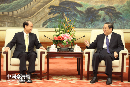 9月12日,全國(guó)政協(xié)主席俞正聲在北京人民大會(huì)堂會(huì)見(jiàn)臺(tái)灣;鶗(huì)董事長(zhǎng)林中森帶領(lǐng)的;鶗(huì)董監(jiān)事參訪團(tuán)一行。(中國(guó)臺(tái)灣網(wǎng) 陳佳慧 攝)